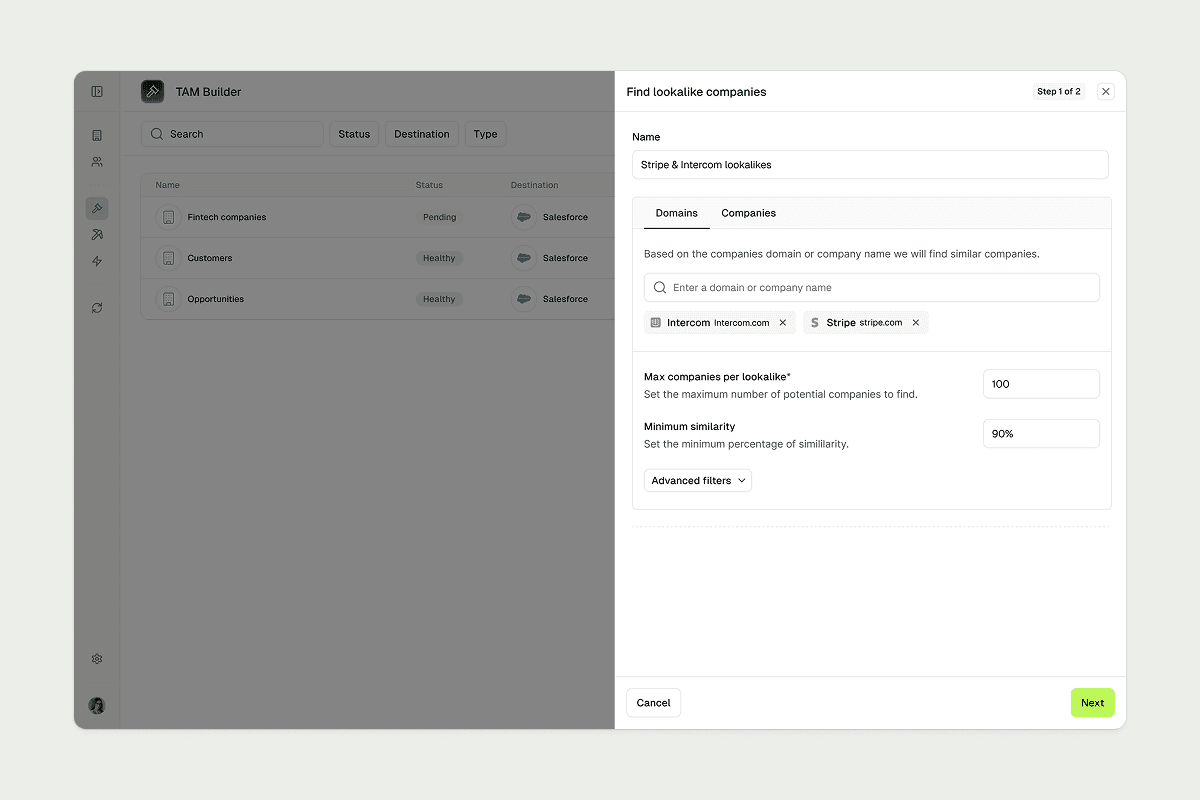 Understanding your Total Addressable Market (TAM) is vital for growth. Our TAM Builder Agent automatically identifies companies that mirror your best customers using our lookalike engine. This ensures you find more of the right companies you truly care about.